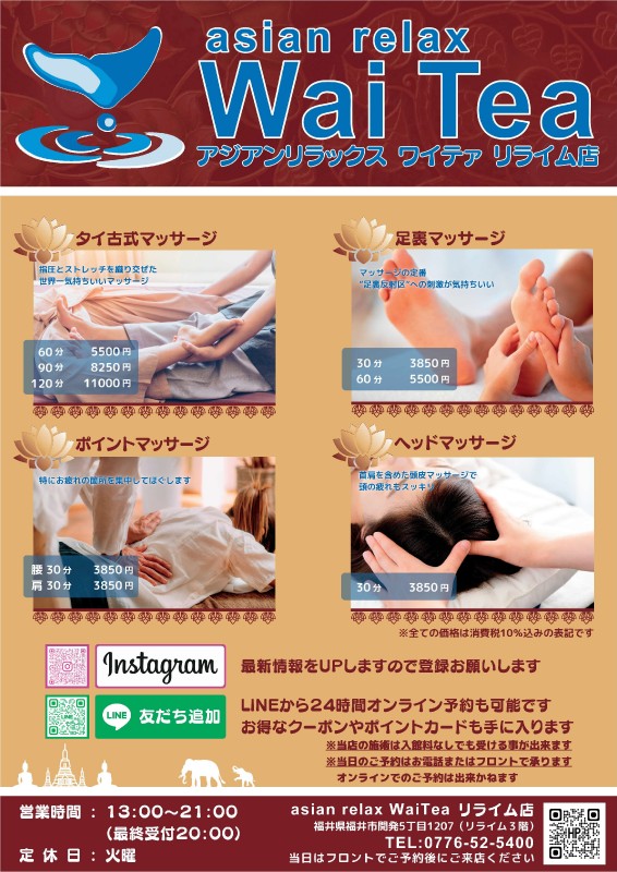 アジアンリラックス ワイテァのみのご利用も可能です -